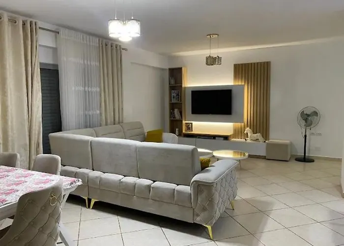 该公寓距离Splash Water Park大概有5分钟的步行路程. 这套公寓距离市中心不到2公里,距离Museum Of Traditions仅有几步之遥. 公寓距离Crepaland400米. Saranda Embankment近在咫尺.
